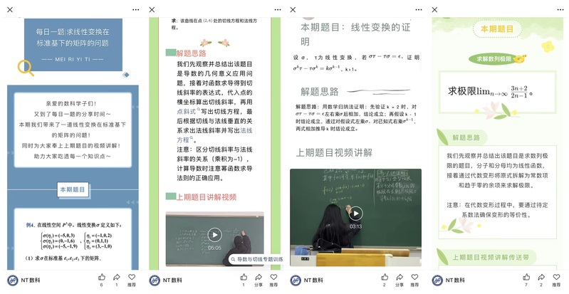 活动伊始,学院依托官方公众号平台,通过“每日一题”攻坚专栏,聚焦数学分析、高等代数这些核心课程的重难点题型,由经验丰富的讲题人逐题深入拆解解题思路,细致传授破题技巧与解题妙招,帮助同学们厘清知识脉络、扫清知识盲区,有效积累实用解题方法。与此同时,各学科教师主动跟进同学们的复习进度,通过线上答疑群、线下辅导等多种方式,及时为大家解答复习过程中遇到的疑难问题,耐心点拨思路、梳理考点,鼓励全院学子调整心态、夯实基础,以从容自信的姿态迎战期末。