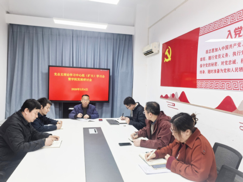 3月4日,学院召开党总支理论学习中心组(扩大)学习会暨学院发展研讨会。此次会议旨在深入学习重要理论精神,紧跟学校发展战略步伐,谋划学院“十五五”发展蓝图。党总支理论学习中心组成员、副处级以上领导干部、各党支部书记以及系主任参加会议。会议由党总支书记李贵希主持。