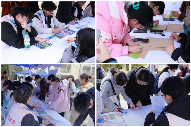 在互动体验区,数学趣味闯关游戏如数字解谜、盲文数学计算等寓教于乐,师生们踊跃参与,在游戏中感受数学的独特魅力;盲文数学体验环节,志愿者们指导师生触摸盲文数学卡片,增进对特殊教育的理解,传递特教温度。在“我为师生办实事”实践区,高年级志愿者组成答疑小组,针对高等数学、线性代数等课程提供学业指导,同时开展学业问题咨询和生涯规划指导,切实解决同学们学习生活中的实际困扰。志愿者们各司其职,活动整体秩序井然,现场气氛热烈而温馨。