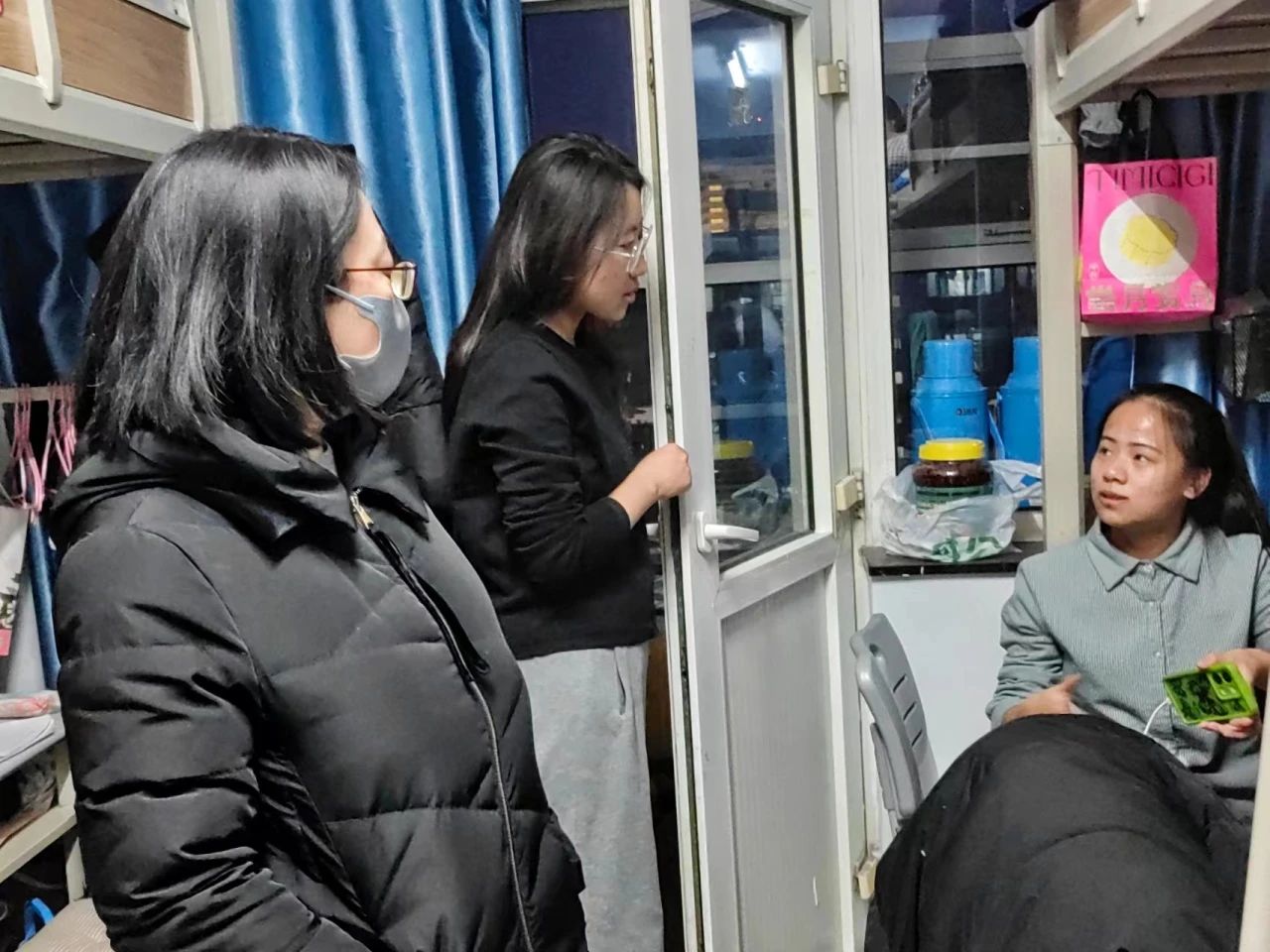为强化学生宿舍管理工作,加强学生宿舍安全卫生教育和管理,形成常态化的运行机制,今年会官网党委副书记副院长陆一琼、学生工作与就业办公室主任包双成及各班班主任于2023年12月15日走访学生寝室。