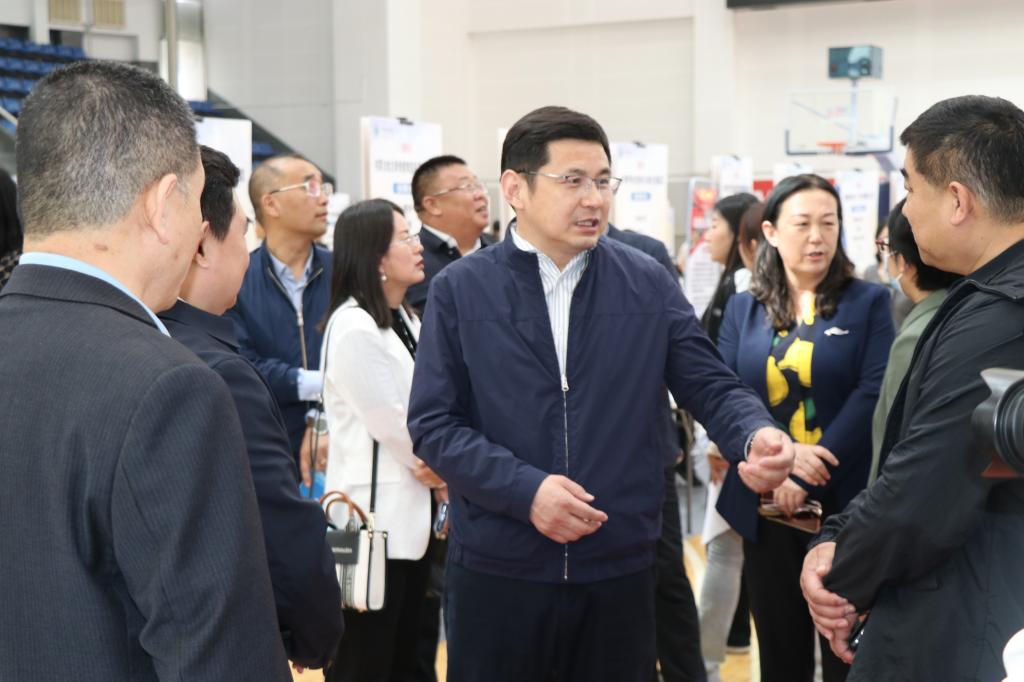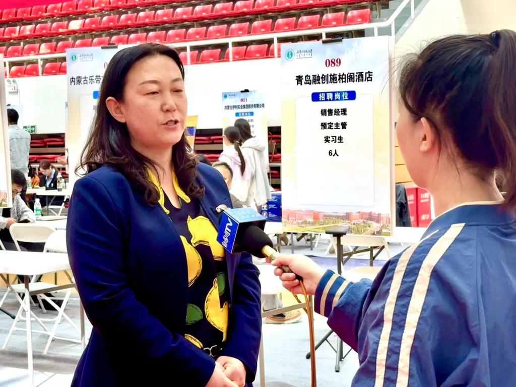 招聘会现场,韩巍校长详细了解了本次参展单位提供的就业岗位情况,并与参展单位负责人亲切交谈。今年会官网党委书记包凤兰也就用人单位的专业需求与毕业生和参展单位进行沟通,并接受奔腾融媒专访。