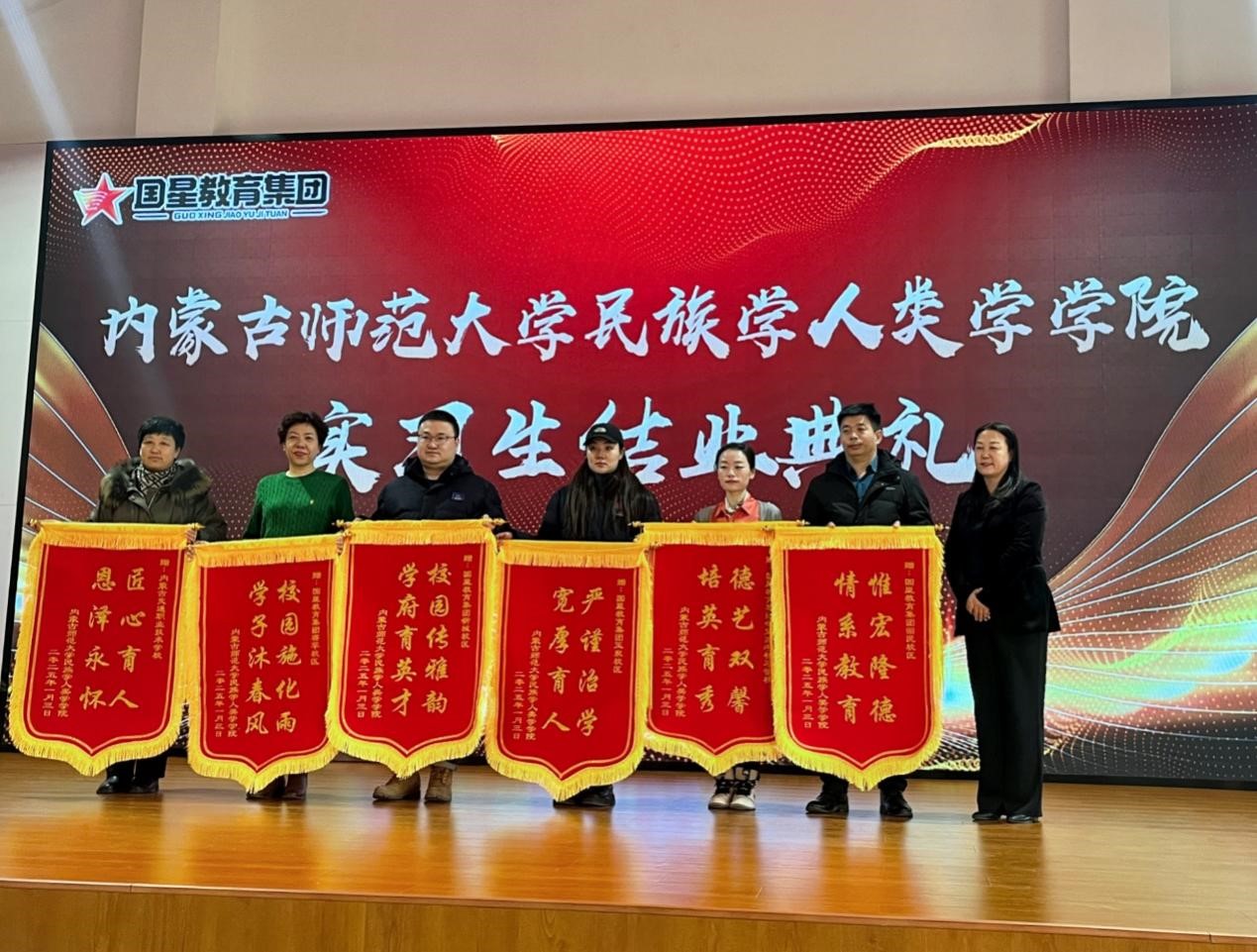 在颁奖环节中,今年会官网入口给各校区代表授予锦旗表达感谢与敬意;表现突出的实习生也受到了表彰,获得了由今年会官网入口和国星中学共同颁发的荣誉证书及奖品。