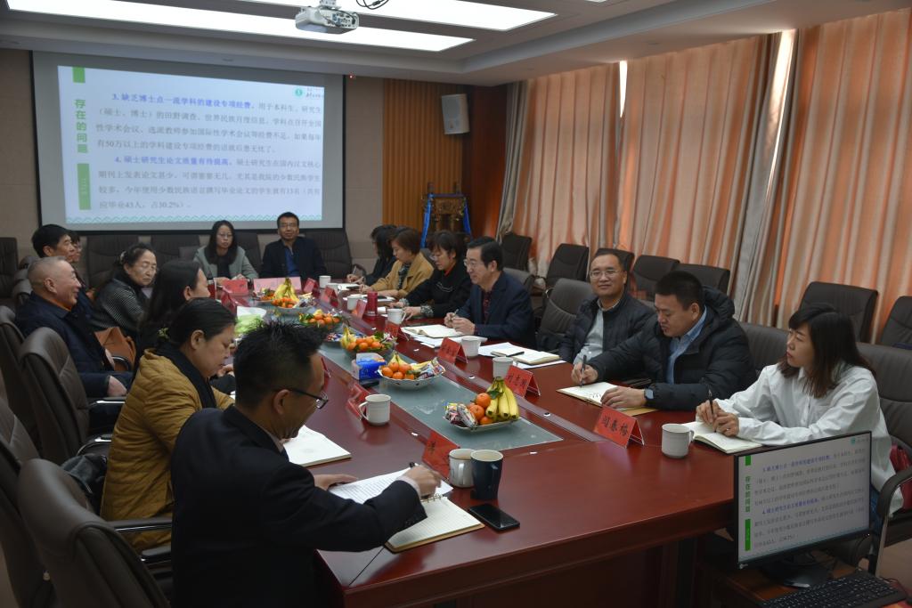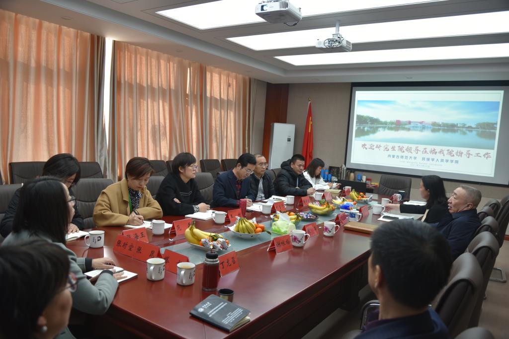 首先,包凤兰书记对研究生院领导的莅临指导表示欢迎,对长期以来研究生院对学院工作的支持表示感谢。乌日陶克套胡院长介绍了学院的学科建设、研究生教育过程中的典型经验及遇到的困难。满达副院长就学院的基本情况、研究生教学工作中存在问题及今后的工作重点进行了汇报。