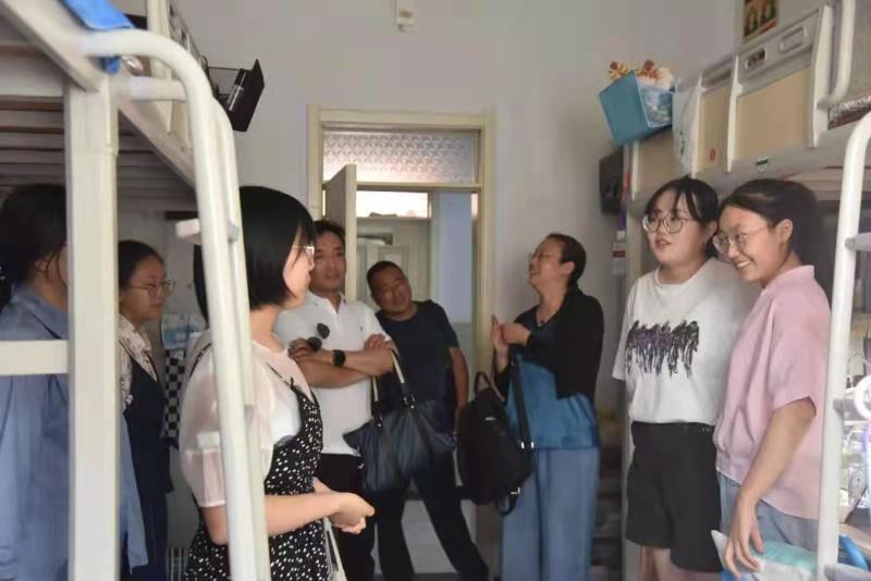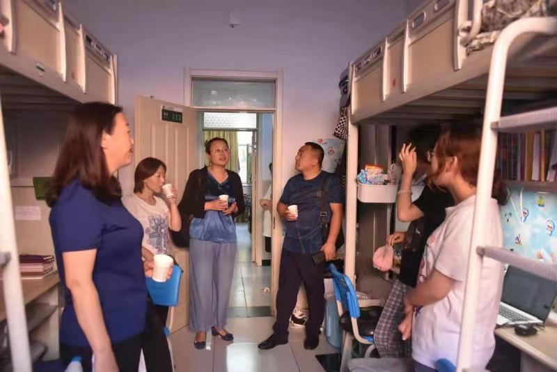 在走访过程中,各位领导与同学们亲切的交流、询问大家在学习和生活中遇到的困难。临近期末,各位领导鼓励大家认真复习,诚信考试。