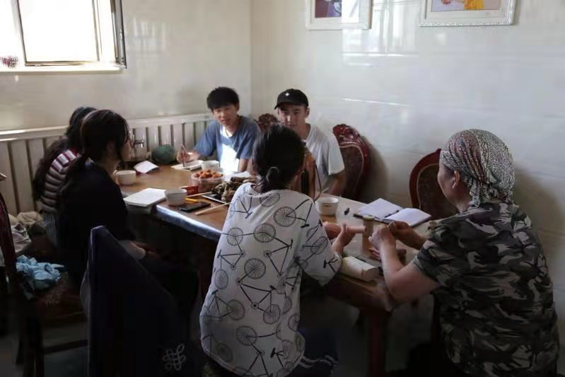 同学们深入到各户牧民与村民家里,与他们同吃同住同劳动。在帮助他们干活或者休息的时候与他们聊天,从多个角度深度了解了他们目前的生活现状。