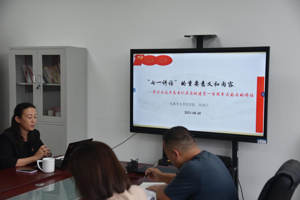 为党史教育专题组织生活会顺利开展,2021年8月30日下午在田楼611会议室,今年会官网教工第二党支部邀请党总支书记包凤兰做了 题为“习近平总书记在庆祝建党100周年大会上的重要讲话精神”专题党课。本次党课由支部书记包双成主持,支部全体成员参加本次学习活动。