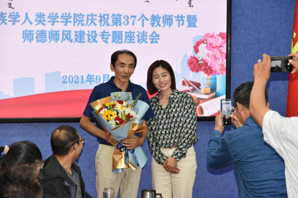 会上为光荣退休的铁安教授进行了欢送仪式。党总支书记包凤兰回顾了铁安教授的工作经历,赞扬铁安老师对事业执着、忠诚,科研、教学人才培养等各个方面硕果累累,桃李满天下,配得上教师这一尊称。接着铁安老师满怀深情地回顾了工作生活中的感受和体会,他以充满感恩的心情,表达了对党的关怀、学校及学院领导的支持和帮助的感激之情,表达了对同事们和同学们的不舍之情。