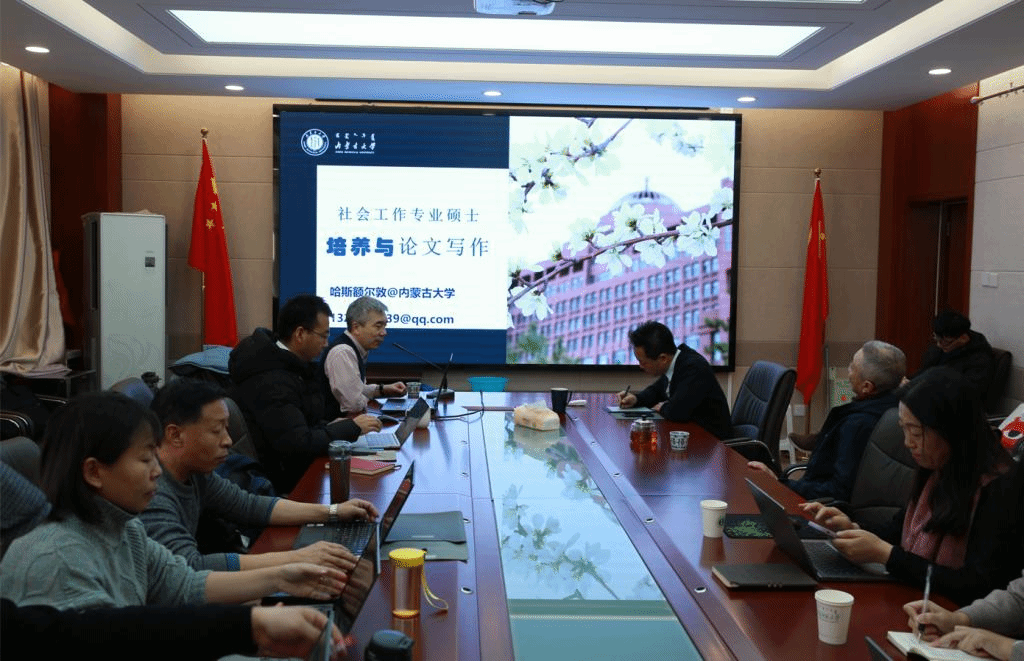 第二场,特邀内蒙古大学社会工作学位点主任哈斯额尔敦教授做了题为“社会工作专业硕士培养与论文写作”专题讲座。他从导师与课程、实践实务实习、选题与开题、格式与内容四个方面开展报告,通过结合自身教学实例和经验,从多个角度阐述了培养学生的方式和理念。