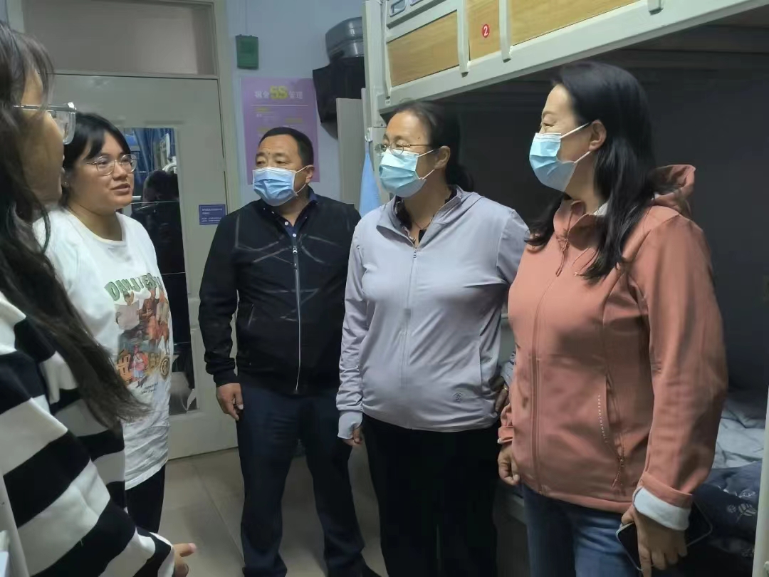 入驻赛罕、盛乐两个校区后,在学校疫情防控领导小组的统一指挥下,配合学校完成同学们每日的核酸检测、心理疏导、物资保障等各项工作。例如,走访学生宿舍,了解学生们的学习生活情况;发放口罩,防止同学们之间的交叉传染;并勉励同学们严格执行学校疫情防控要求,遵守学校规章制度,不受疫情影响确保正常的学习生活。
