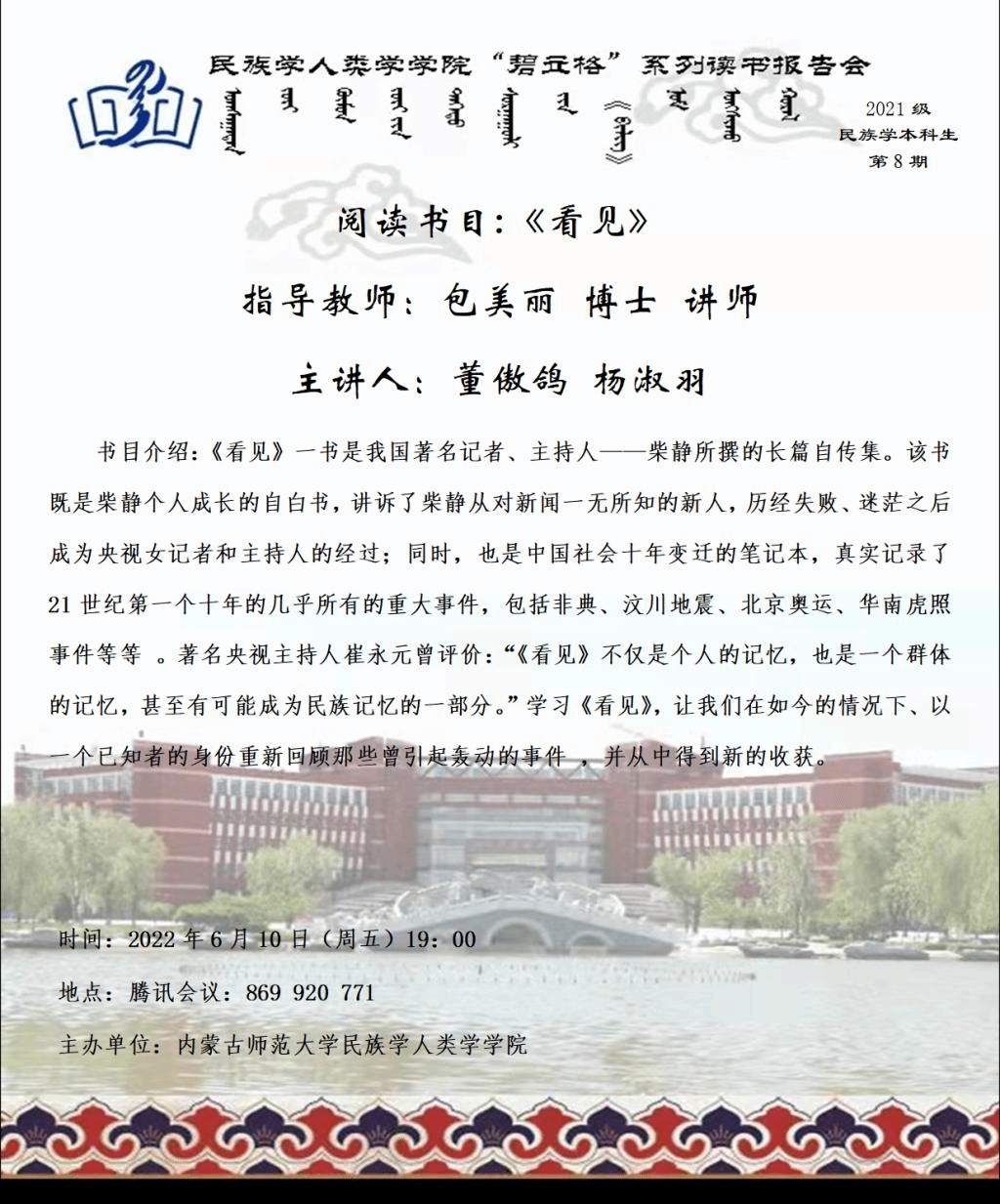 今年会官网入口“碧立格”系列读书报告会预告 2021级学术型硕士研究生 第8期