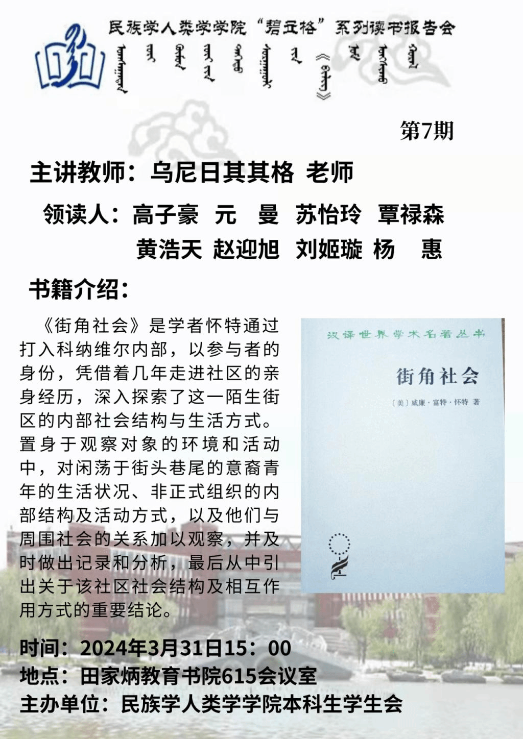 上一条:今年会官网入口“碧立格”系列读书报告会预告博士研究生第70期 下一条:关于申报2024年度内蒙古自治区高校人文社科民族学重点研究基地设立开放课题的通知