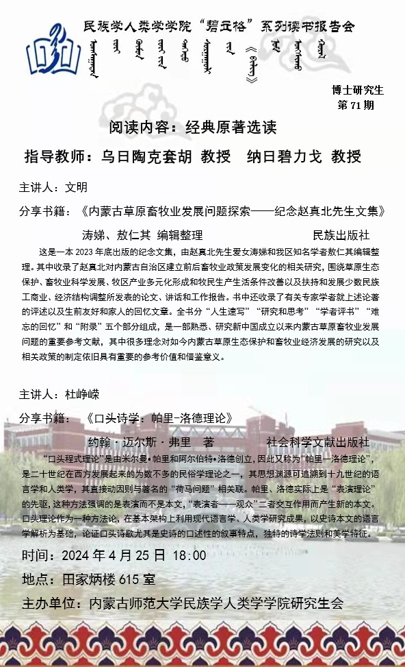 今年会官网入口“碧立格”系列读书报告会预告博士研究生第71期