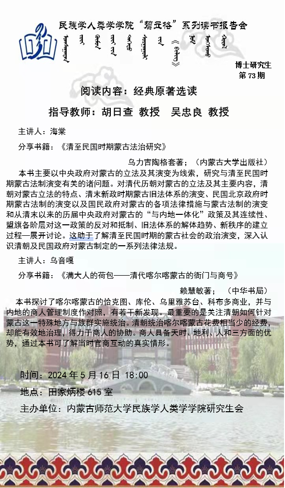 今年会官网入口“碧立格”系列读书报告会预告博士研究生第73期