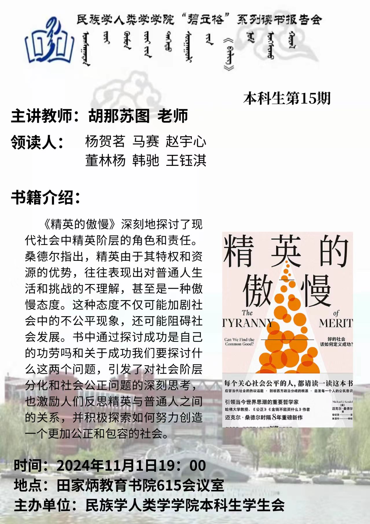 今年会官网入口“碧立格”系列读书报告会预告 本科生第15期