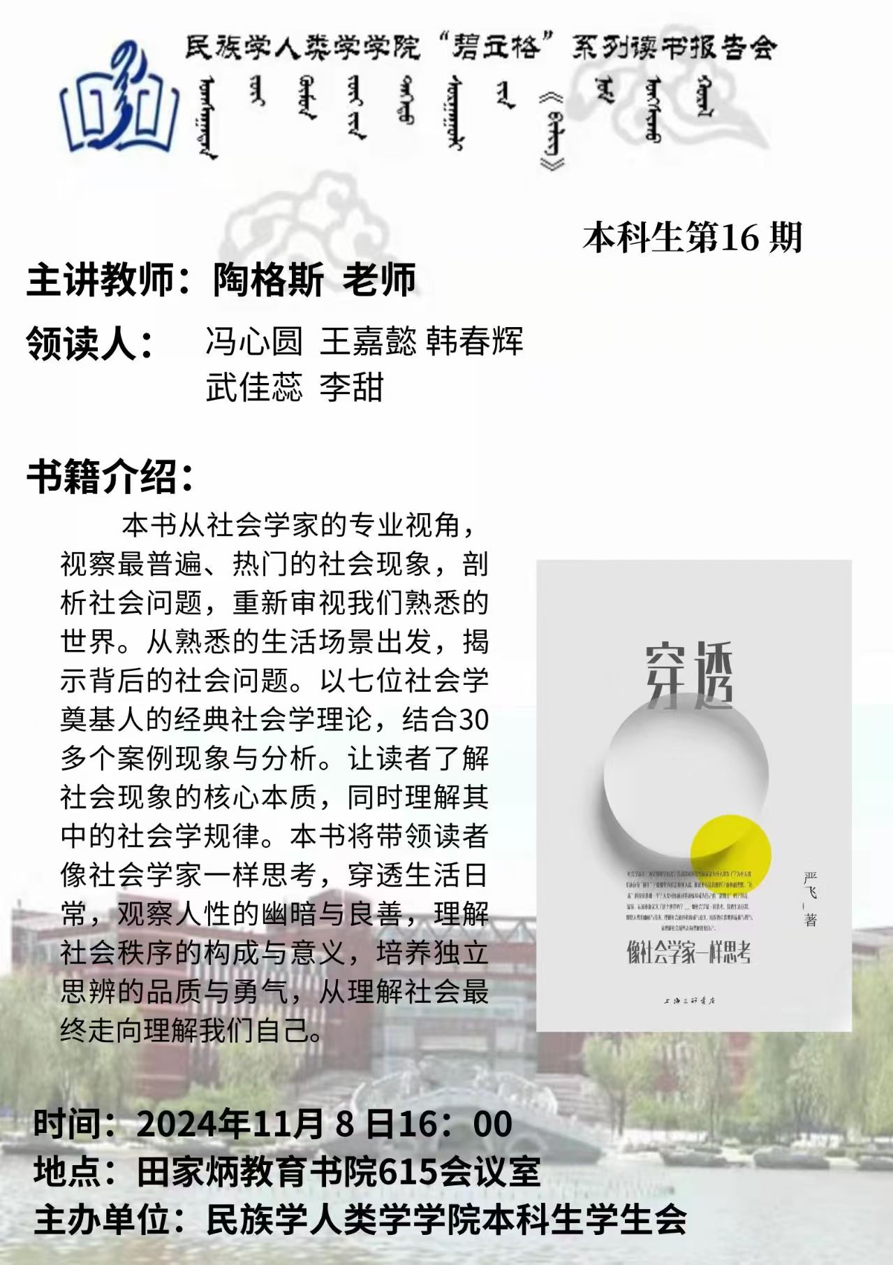 今年会官网入口“碧立格”系列读书报告会预告 本科生第16期