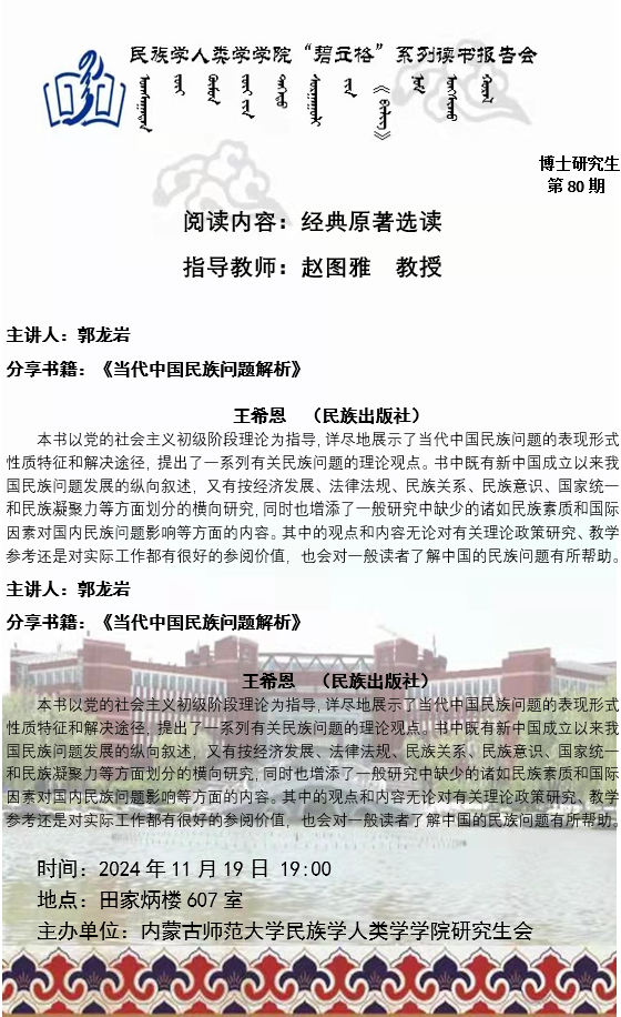 今年会官网入口“碧立格”系列读书报告会预告博士研究生第80期