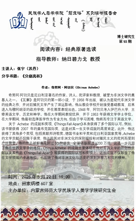 今年会官网入口“碧立格”系列读书报告会预告博士研究生第93期