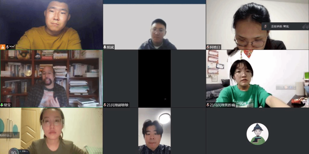 首先,德格金同学从历史背景、不同时代民族主义的内容和当今世界热点问题中的民族主义等方面详细的解读了本书内容。其次,常宝教授从民族主义、共同体和重塑中华民族等方面点评了本书。最后常宝老师与各专业同学一起讨论当今世界热点问题中的民族问题、如何在海外华人群体中做好铸牢中华民族共同体意识、人类命运共同体等中国方案推向世界、未来世界格局去向是大一统?等方面进行交流和讨论。