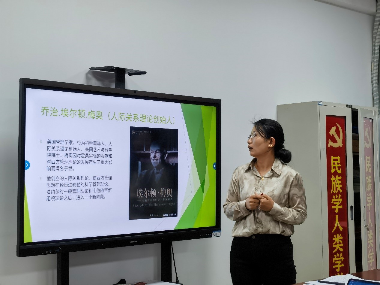 首先,鲍金凤分享了乔治 埃尔顿 梅奥著作《工业文明的社会问题 》的背景以及结构。其次,从著作的研究的核心、研究的观点、研究的思路和研究的贡献进行了讲解。最后,她总结时指出:人其实是社会的人,人际关系对员工的健康和工作的效率有很大影响,管理者需要改变过去人是“经济动物”的假设,树立以人为本的管理理念。同时,在组织中也存在着非正式组织,它是以工人之间的好感和相互喜爱为基础而结成的小团体。非正式组织的存在对员工的心理健康和工作效率有很大的影响,组织中的领导者需要给予非正式组织发展的空间,以此来提高员工的满意度,最终提升组织绩效。