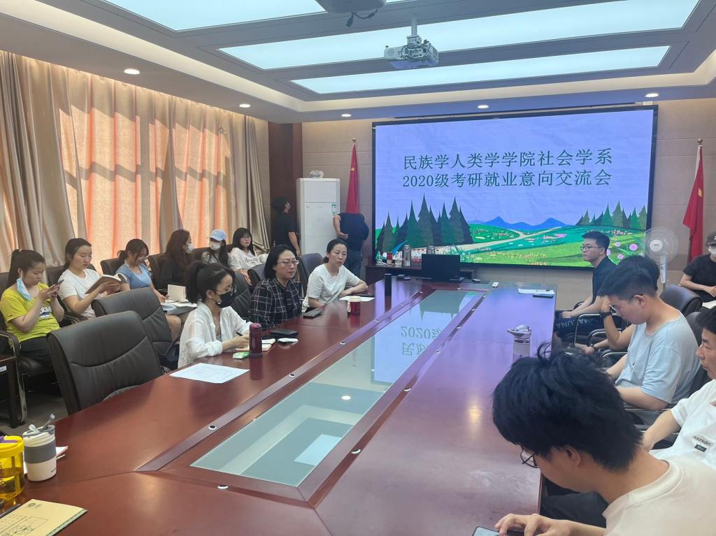 2023年6月14日上午,社会学系在田楼607举行2020级考研就业意向交流会,会议由社会学系系主任陆一琼主持,副系主任伊丽娜、20级社会学班主任刘燕飞及2020级社会学班全体同学参会。
