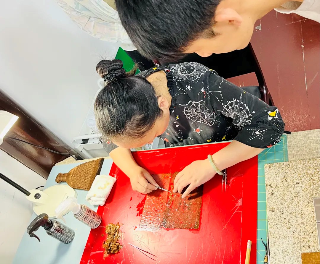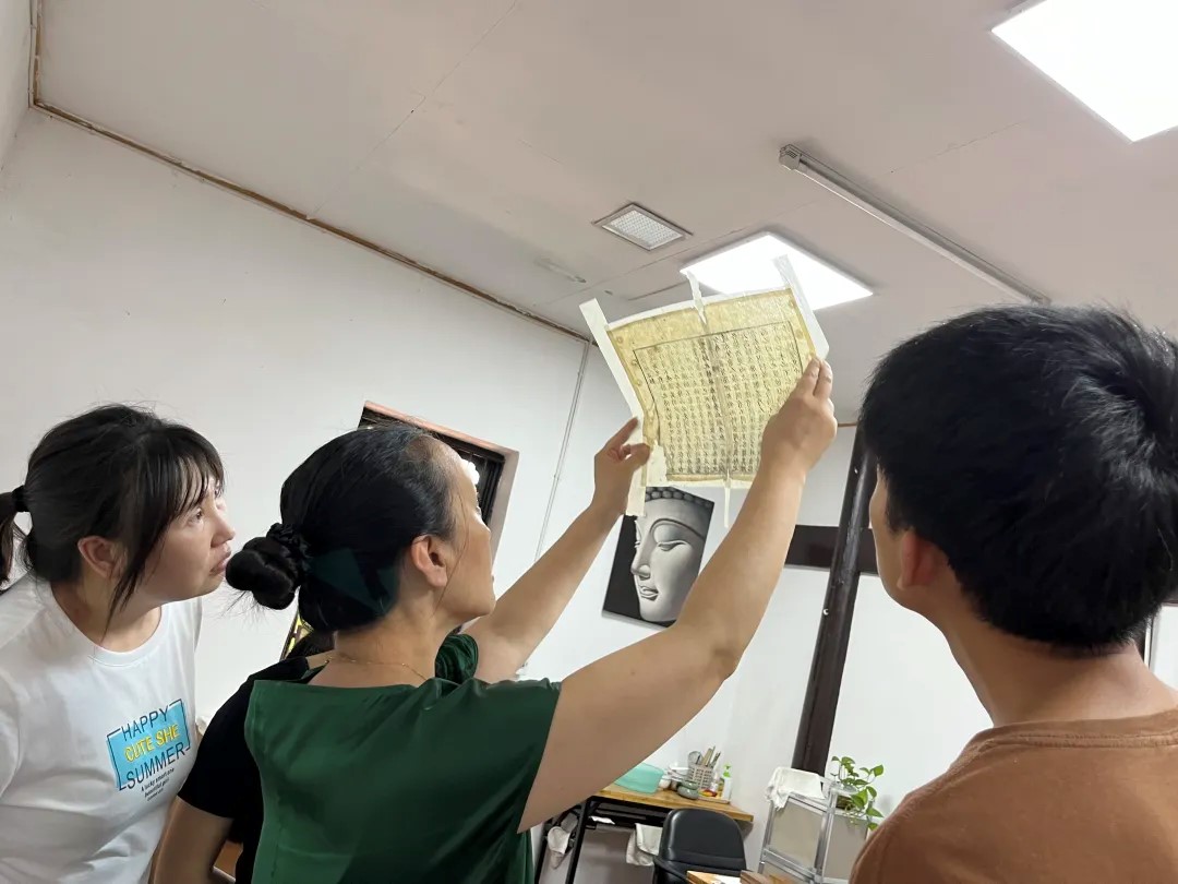 宗教学专业师生参观古籍善本修复中心工作室和博物馆后,探讨了古籍修复的工作流程。修复中心的王老师对同学们进行了详细的指导,初步展示两种古籍修复流程,并一对一指导各位同学进行修复练习。