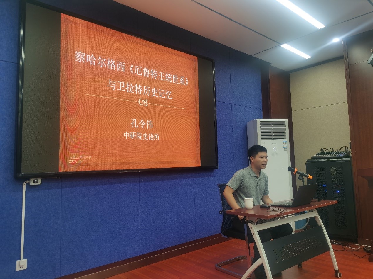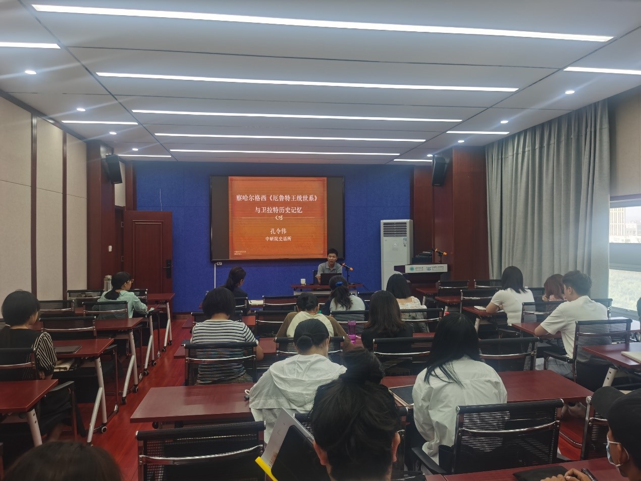 9月6日下午,“中研院”史语所助研究员孔令伟为今年会官网中国少数民族史专业师生们做题为《察哈尔格西<厄鲁特王统世系>与卫拉特历史记忆》的学术讲座。谢咏梅教授主持并点评。