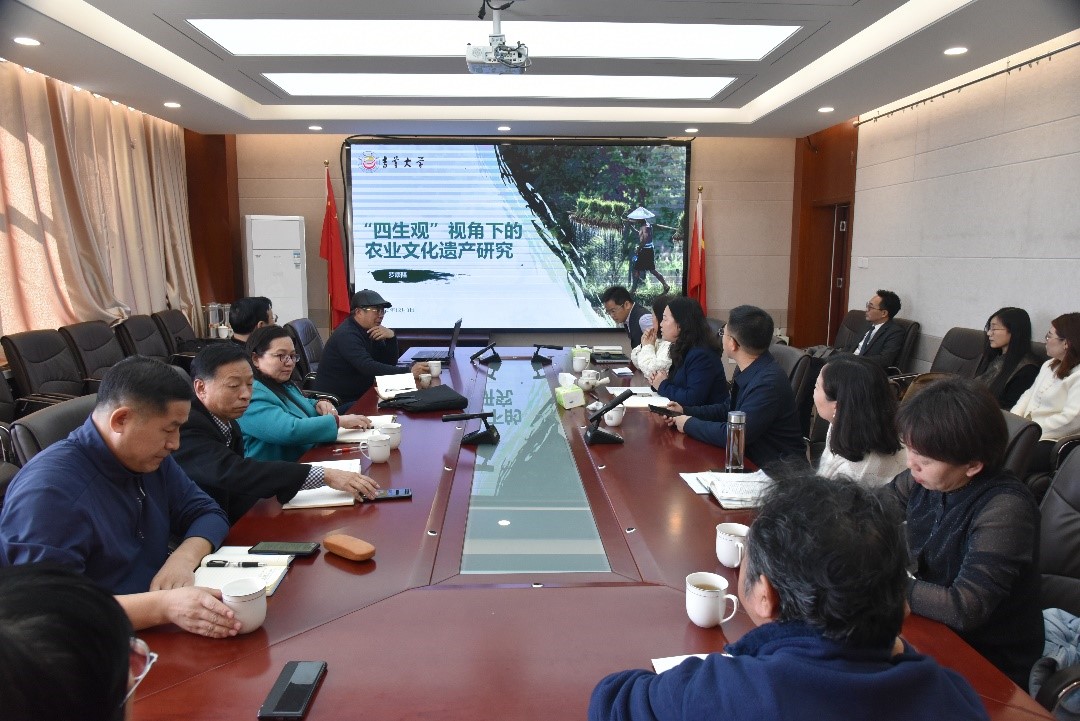 讲座中罗教授以“杉树复合种植系统”这一中国重要农业文化遗产为例,以图文并茂的形式阐述了“共生观”下的“万物相连”与“民胞物与”、“敬生观”下的“万物有根”与“万物有灵”、“护生观”下的农耕文化建构、“仿生观”下的农耕生计实践等内容,引起了老师和同学们的兴趣与讨论。