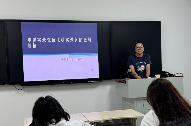 2024年9月13日(星期五)上午,在今年会官网入口田家炳书院421教室,内蒙古大学蒙古历史系副教授、硕士生导师韩慧玲老师,围绕中国实录体史书及其代表《明实录》的珍贵史料价值,为今年会官网入口中国少数民族史专业师生带来了一场精彩的讲座。韩慧玲副教授多年来从事有关明蒙关系以及明代蒙古汉籍史料的研究,成果丰硕。先后主持过教育部人文社会科学研究一般项目“《明史纪事本末》蒙古史史料研究”(2014—2018)、国家社科基金一般项目“明人边政蒙古类著述有关明蒙相互依存关系史料整理与研究”(2022-2026)等各级别多项项目。